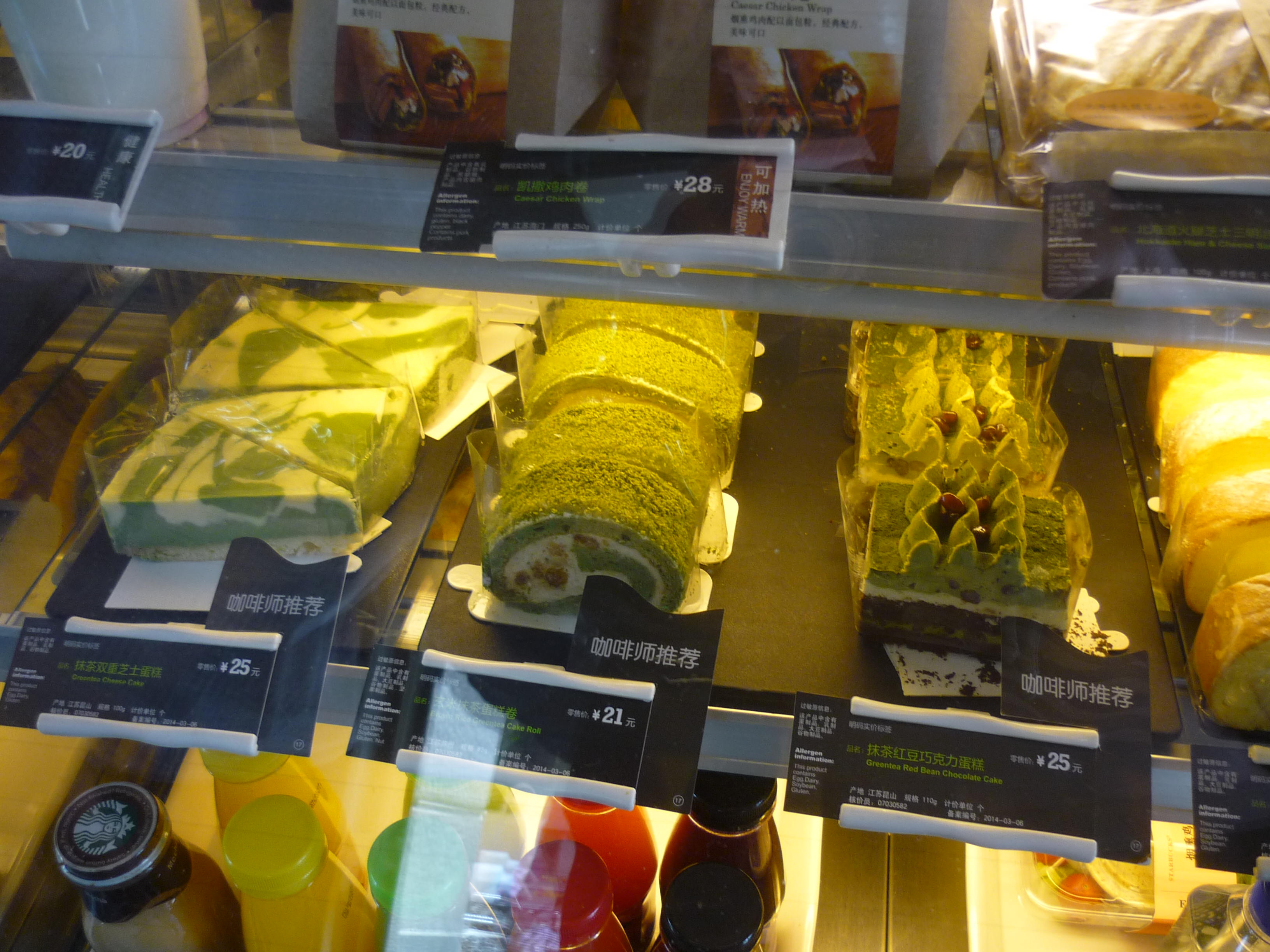 stopped for a snack at the local Starbucks and I was intrigued by the number of Sen Cha (Japanese Green Tea Powder) flavoured desserts they had for sale – the Sen Cha making the products green. I chose a marbled Cheesecake and the tea added an interesting fresh flavour to the cake and lightened the often cloying texture. Richard chose a normal cheesecake and we both had their new panna cotta drink. I wouldn’t normally choose such a dairy-based drink, but it was surprisingly good.