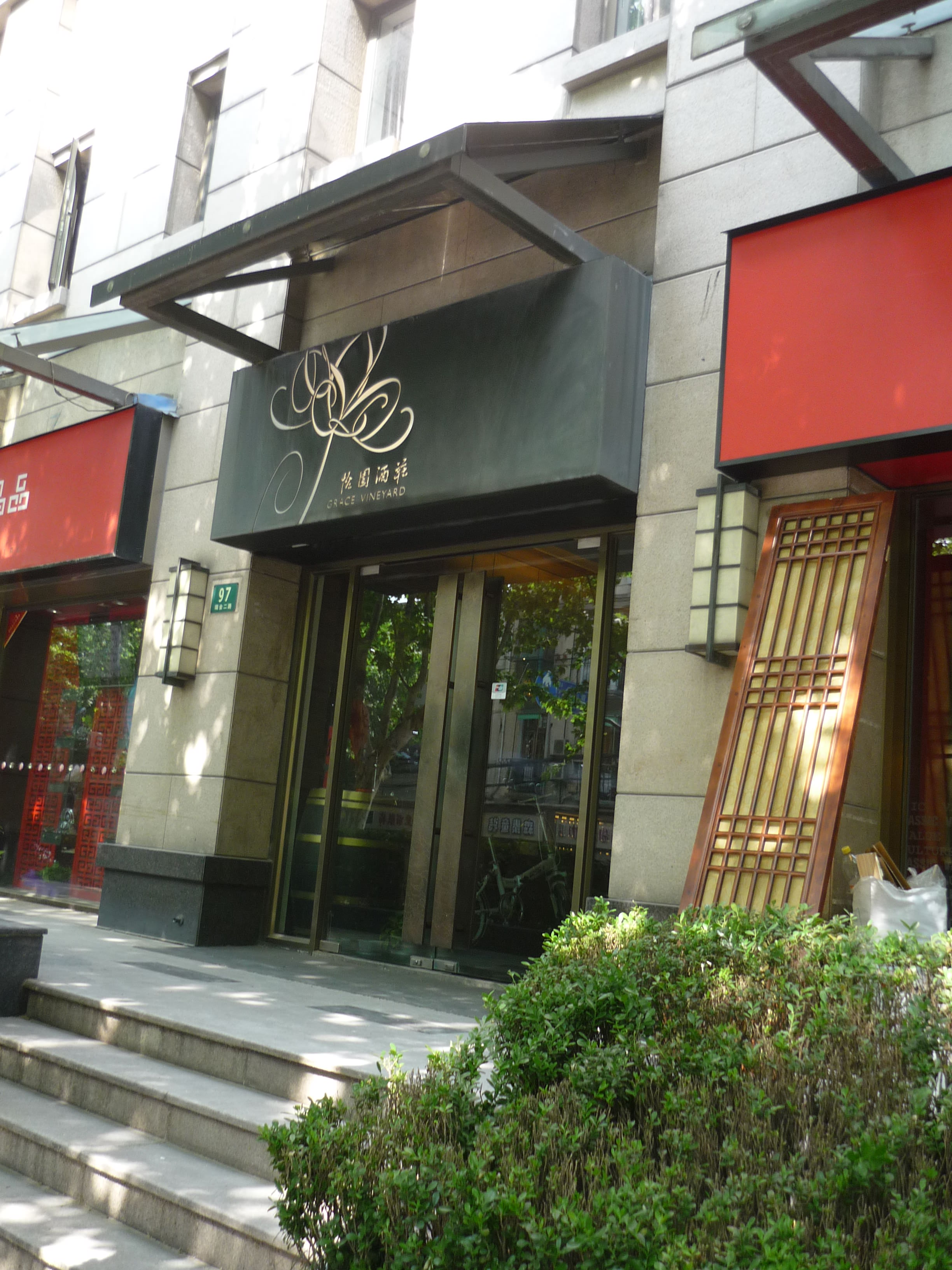From here we went onto Grace’s Vineyard – a wine shop. I first heard of Grace’s Vineyard from a television programme about young Chinese Entrepreneurs. Whilst the youngster in question had been away in the US getting a degree in psychology her father, a coal mining industrialist who had been searching for the right spot for many years, had bought in 1997 a 200 Hectare farm in Shanxi Province (south-west of Beijing) in partnership with a french viticulturist and planted its many acres with 5 varieties of vines: Chenin Blanc, Chardonnay, Merlot, Cabernet Franc and Cabernet Sauvignon. When she returned home she worked for Goldman Sachs in HK until 2002 when she resigned to take up her job to market the wine. She bought in wine-making experts from France to help. None of this makes her an entrepreneur in my book – even the limited facts revealed in the TV programme made me think that she didn’t deserve the title – but never mind, the wines that they are producing are excellent and award winning.