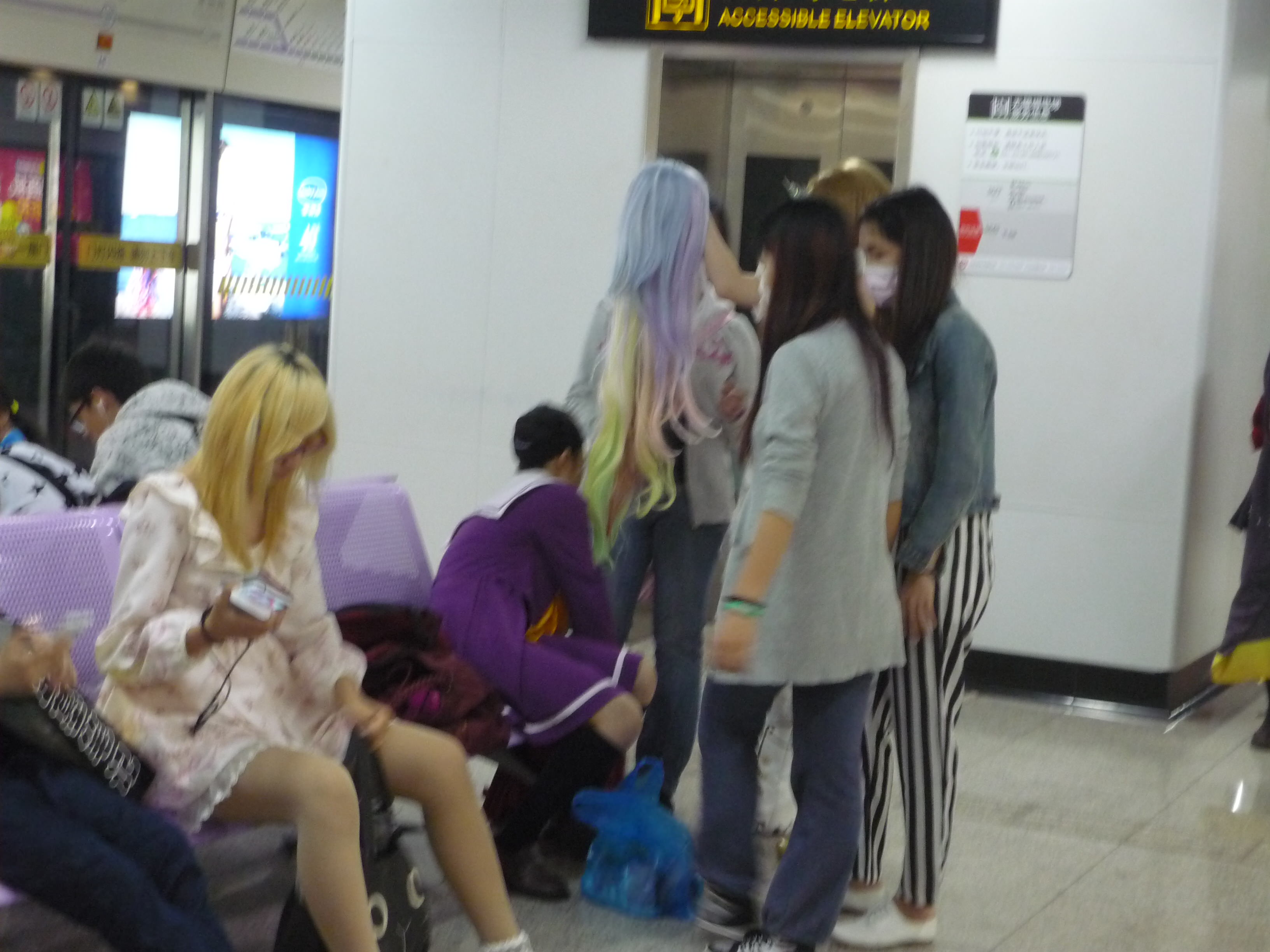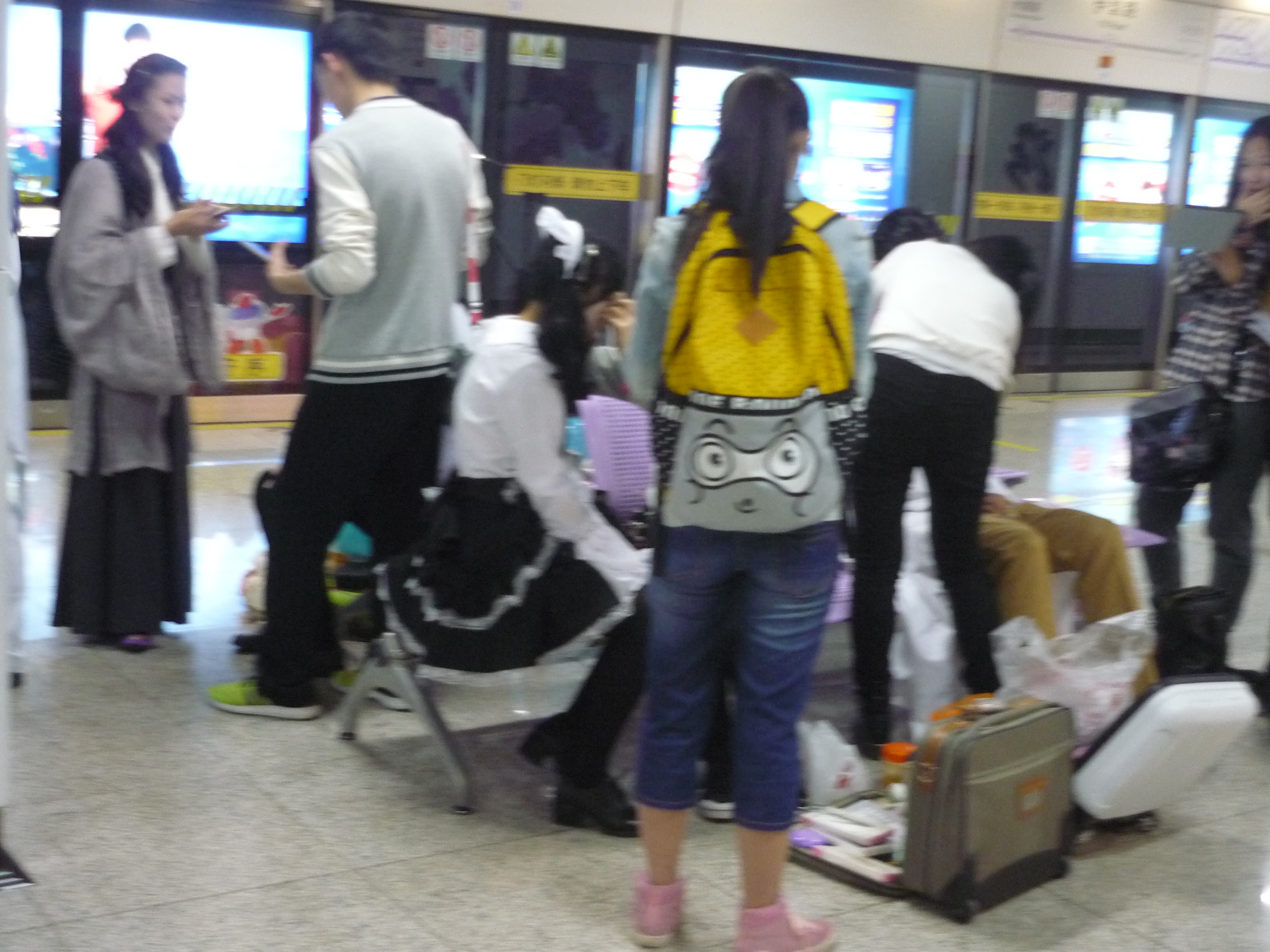 and why here on a Saturday afternoon at Yili Lu Metro station? The answer, I think, lay upstairs, although I can’t be certain. That and watching NHK World an English -language Japanese TV Channel on which I saw a programme about Lolita Fashion competitions. It appears that part of the deal is to have your photograph taken in a suitable place and send it in to the Japanese TV programme.