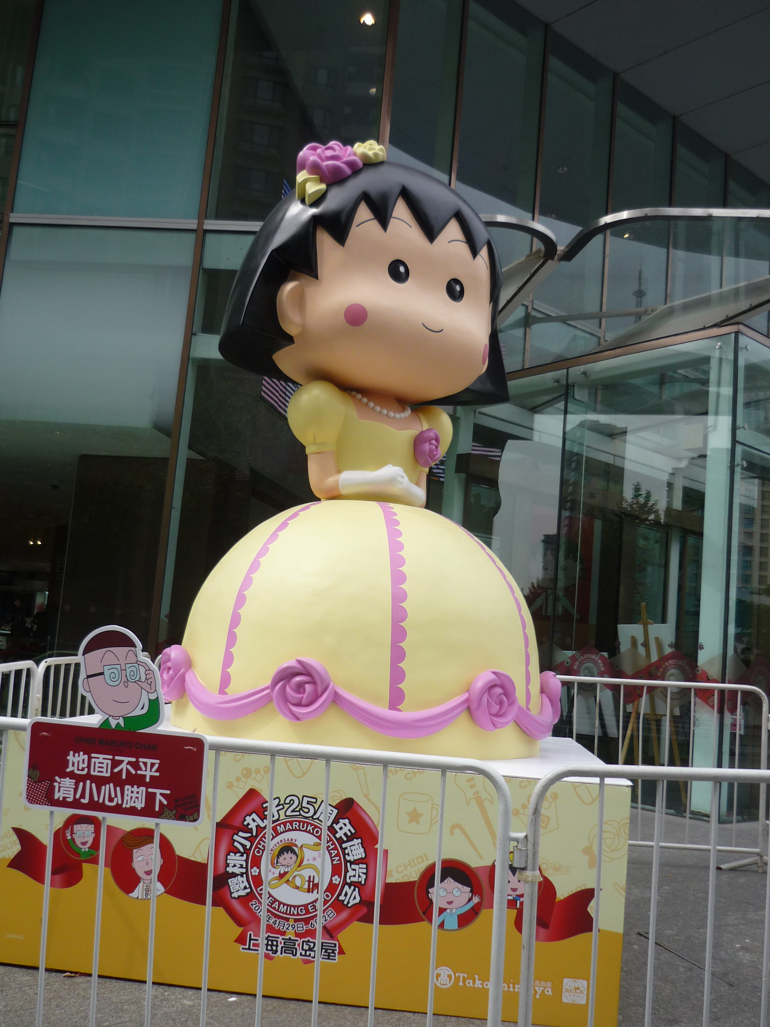 Upstairs at the Yili Metro station is the Shanghai Takashimaya department store, where I went to investigate the following day, was a Chibi Maruko Chan Dreaming Expo of the apparently popular Japanese cartoon brand with outsize models outside the store and crowd barriers set up to manage the crush.