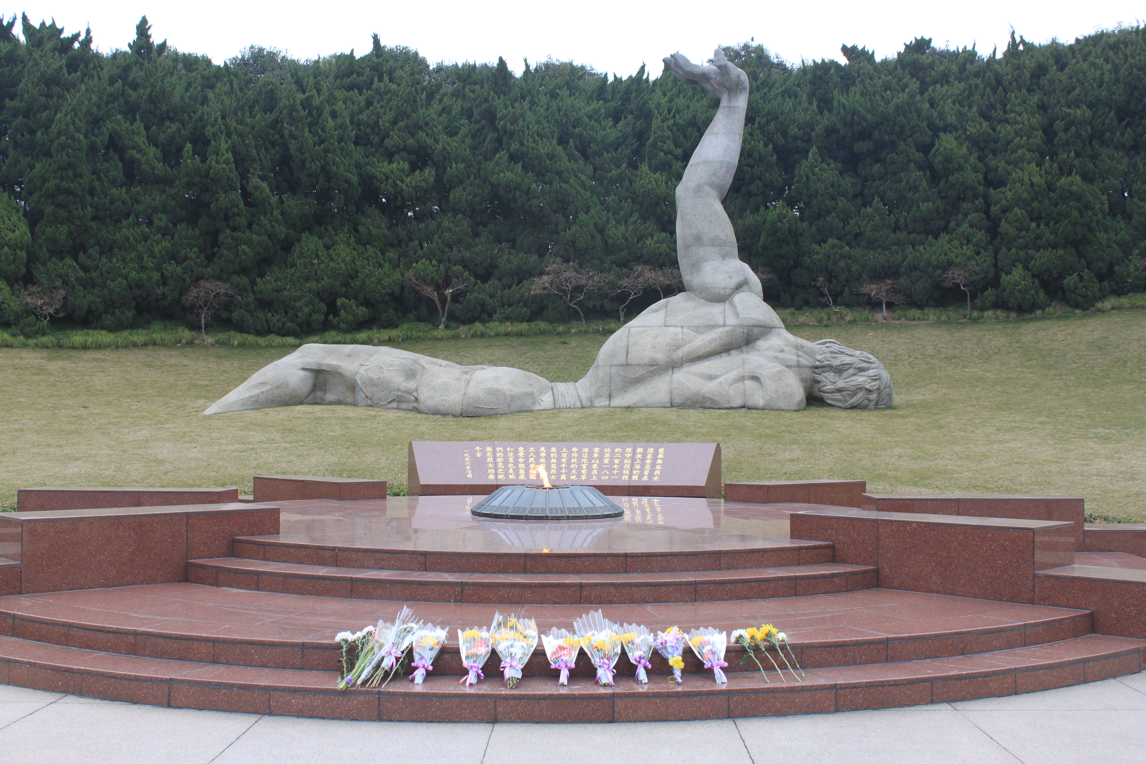 Longhua Cemetery and there is precious little English information in the Park, which is unusual for Shanghai. And I didn’t study the photograph I had taken of the map at the park’s entrance so I missed an important feature of this park, which I may go back to someday to have a look at. But in the top right hand corner is a tunnel which leads from the original detention house – this park sits on land that was the Songhu HQ of the KMT – to the spot where many of the remains of the victims were actually found the spot is now under the flame of the unknown Martyr and the sculpture to their memory. Many who were killed here by the KMT were teenagers.