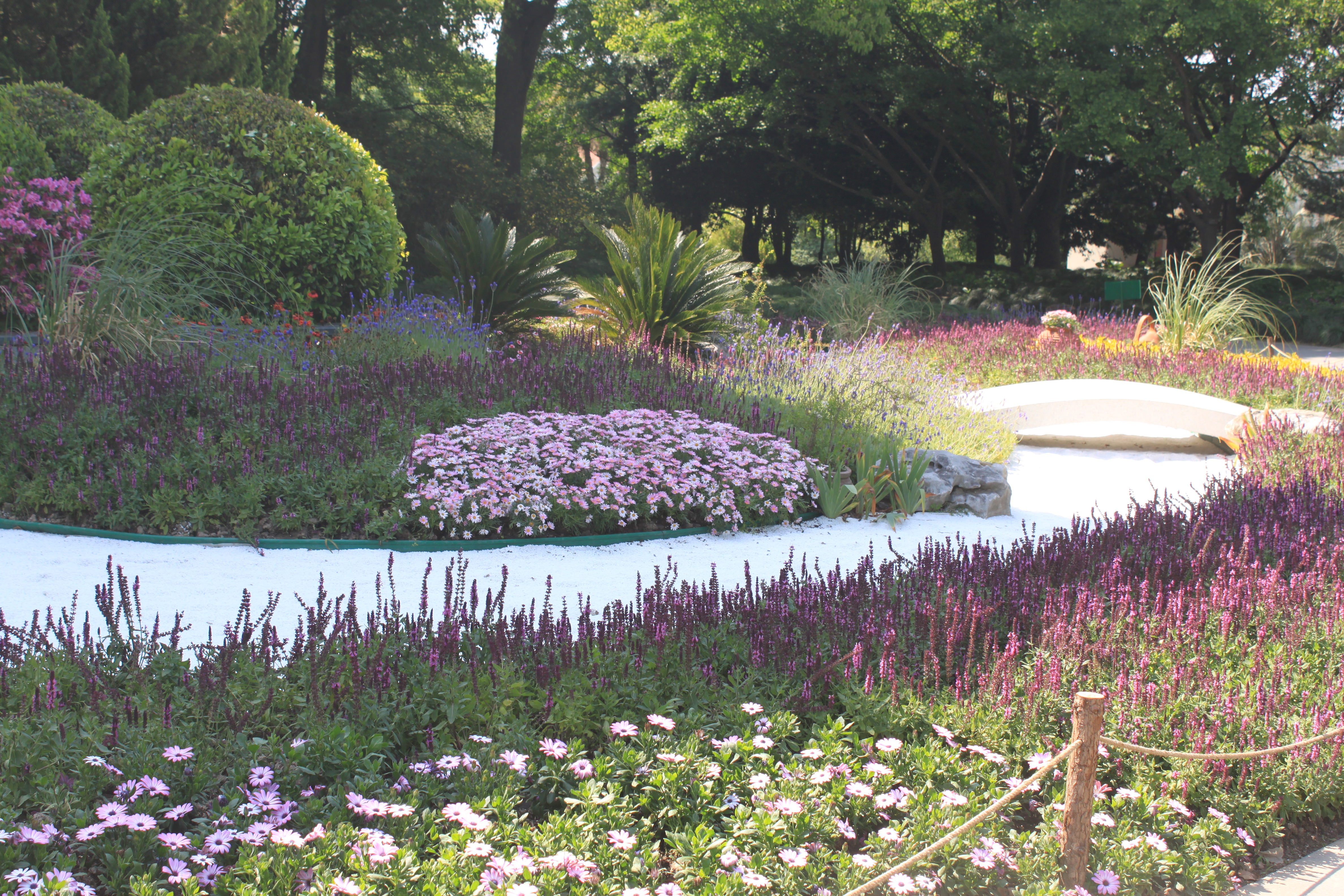However on top of all this there was the Shanghai Botanical Garden’s equivalent of a garden show, with show gardens around the Park. Unlike the show gardens at say Malvern or Chelsea Flower Shows these gardens were there for the season, so some of them may not have been at their best. But there were some gardens here designed by international teams, such as the one from Lithuania and it was interesting to see what China liked about gardens. There weren’t many of the gardens that I especially liked – their use of colour giving me the most issues. I did like these Japanese-style Gardens as they were a bit more subdued:
