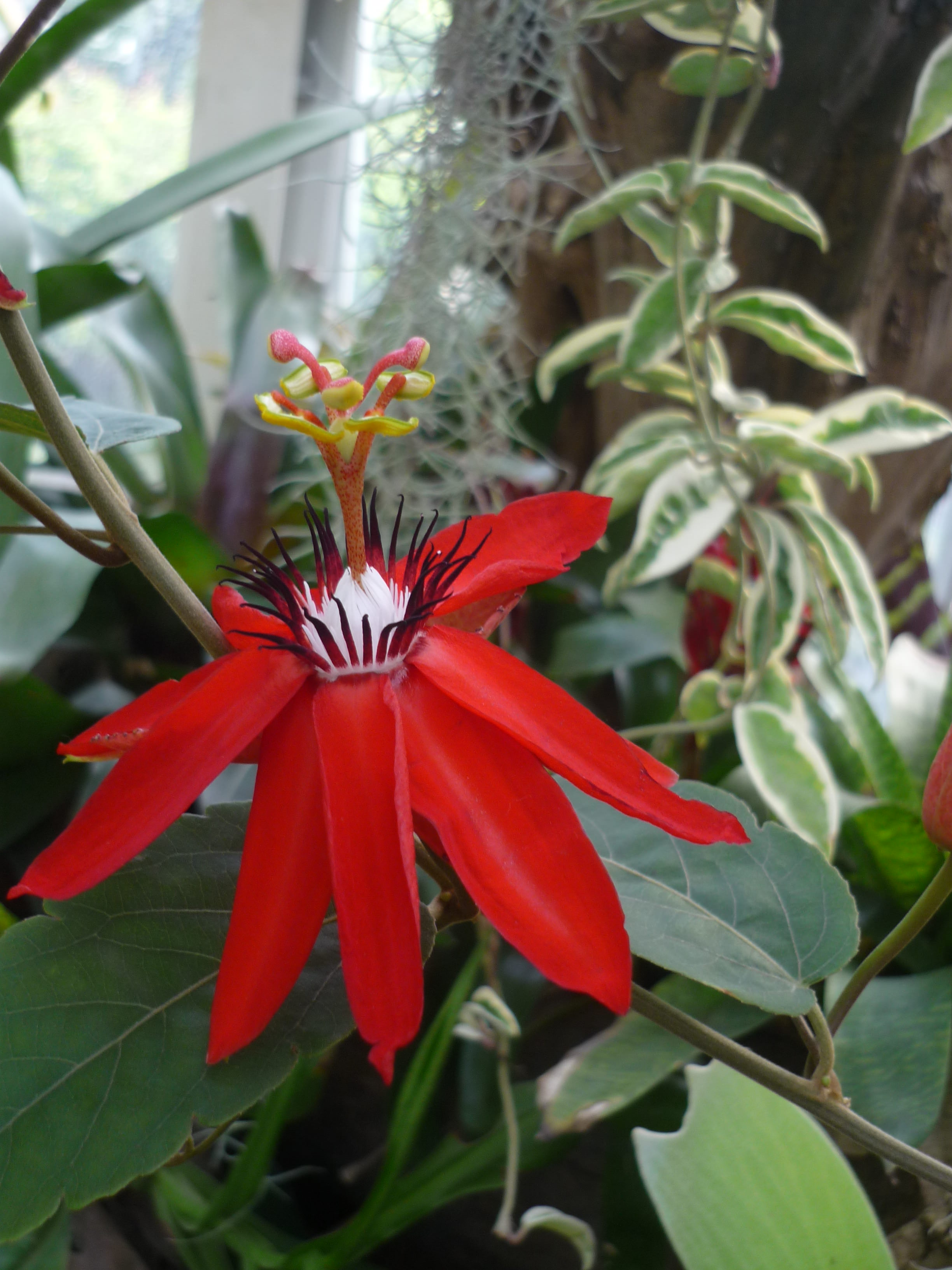 As well as the orchids in the conservatories which I’ve covered in another post, the Four Seasons Greenhouse was home to a variety of plants, including air root plants, a 2m high white and blue Strelitzia and this stunning red passion flower. I think the name is a misnomer because it appeared to be displaying plants from various types of warm areas such as cacti and carnivorous plants rather than the four seasons as we would know it.