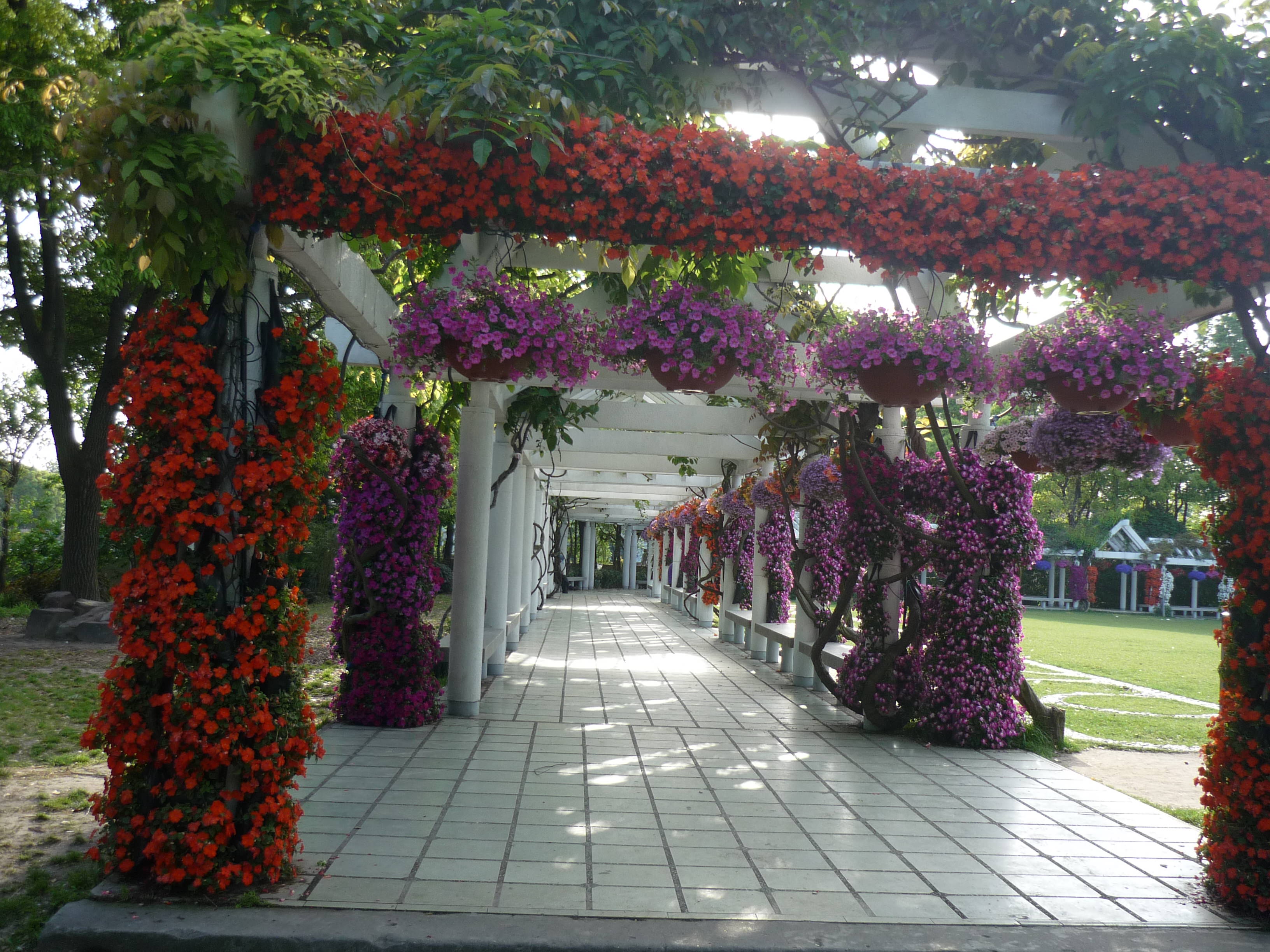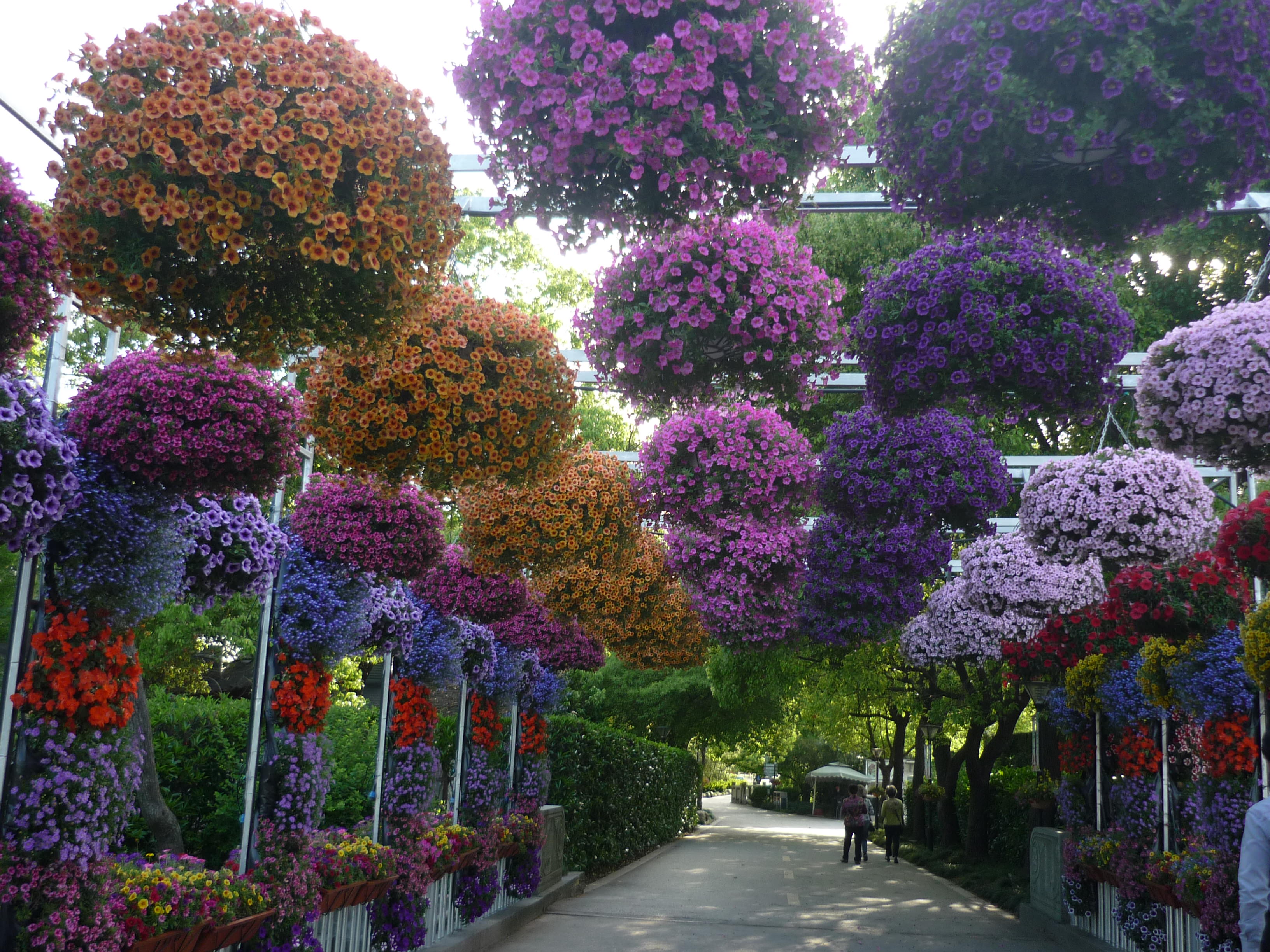architecture of the 1930s and surprisingly, I rather liked them, and there was the odd traditional-style bridge as well. There were white concrete bridges hung with masses of hanging baskets, which I think I would have enjoyed more if the colours had worked together a bit better, as in the last one of the four below.