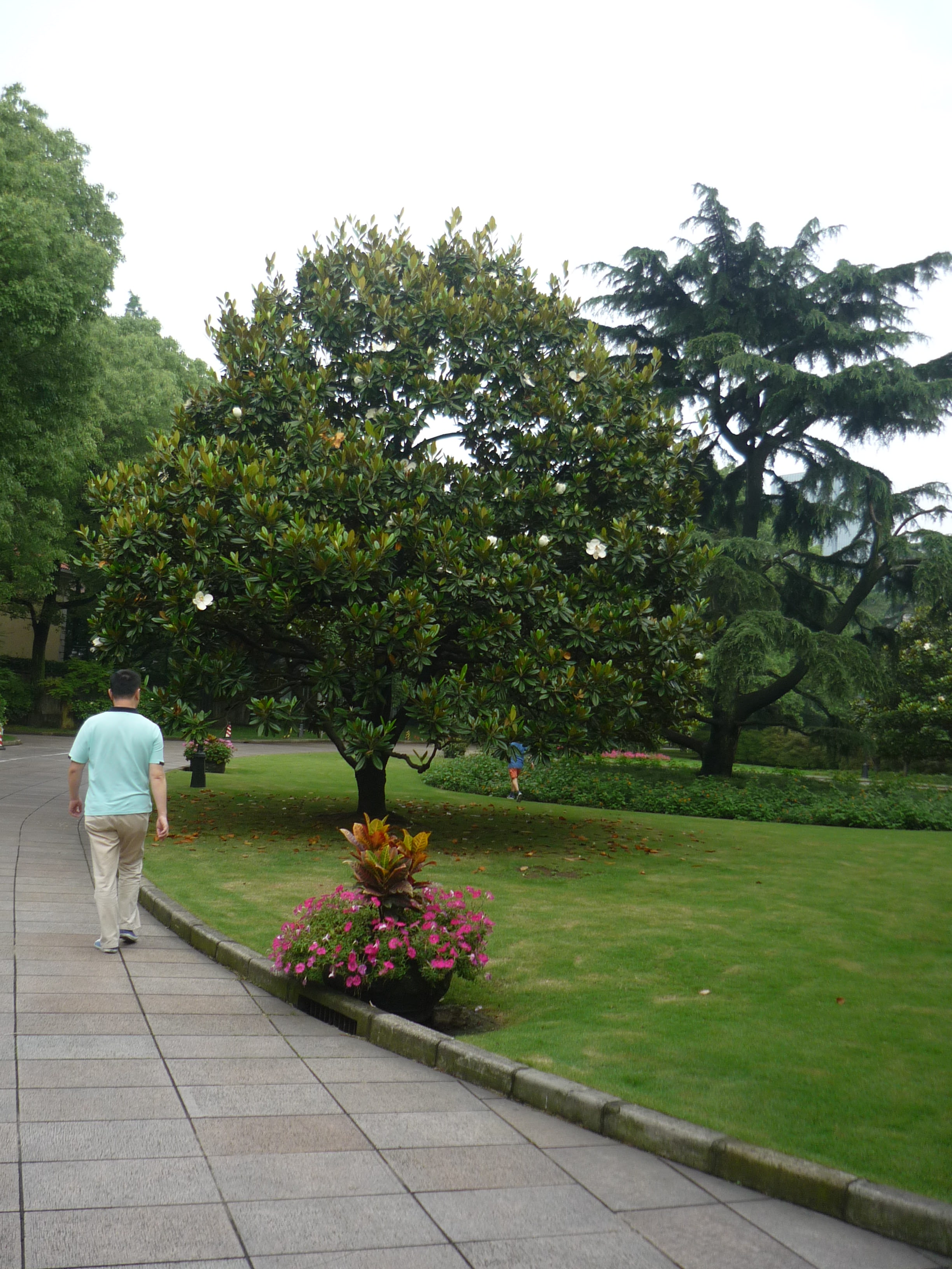 dome of his Peace Hotel on The Bund. He was from a Baghdadi-Jewish family who owned cotton mills in India and profited from the opium trade. He was educated in Britain and in the 1920s he moved much of his money out of India and into property in Shanghai where he made even more money building the smarter parts of the city. The upshot of all this is that the gardens not only have oriental orange trees and palms, but british-stlye grand mature conifers and big wide open green lawns.