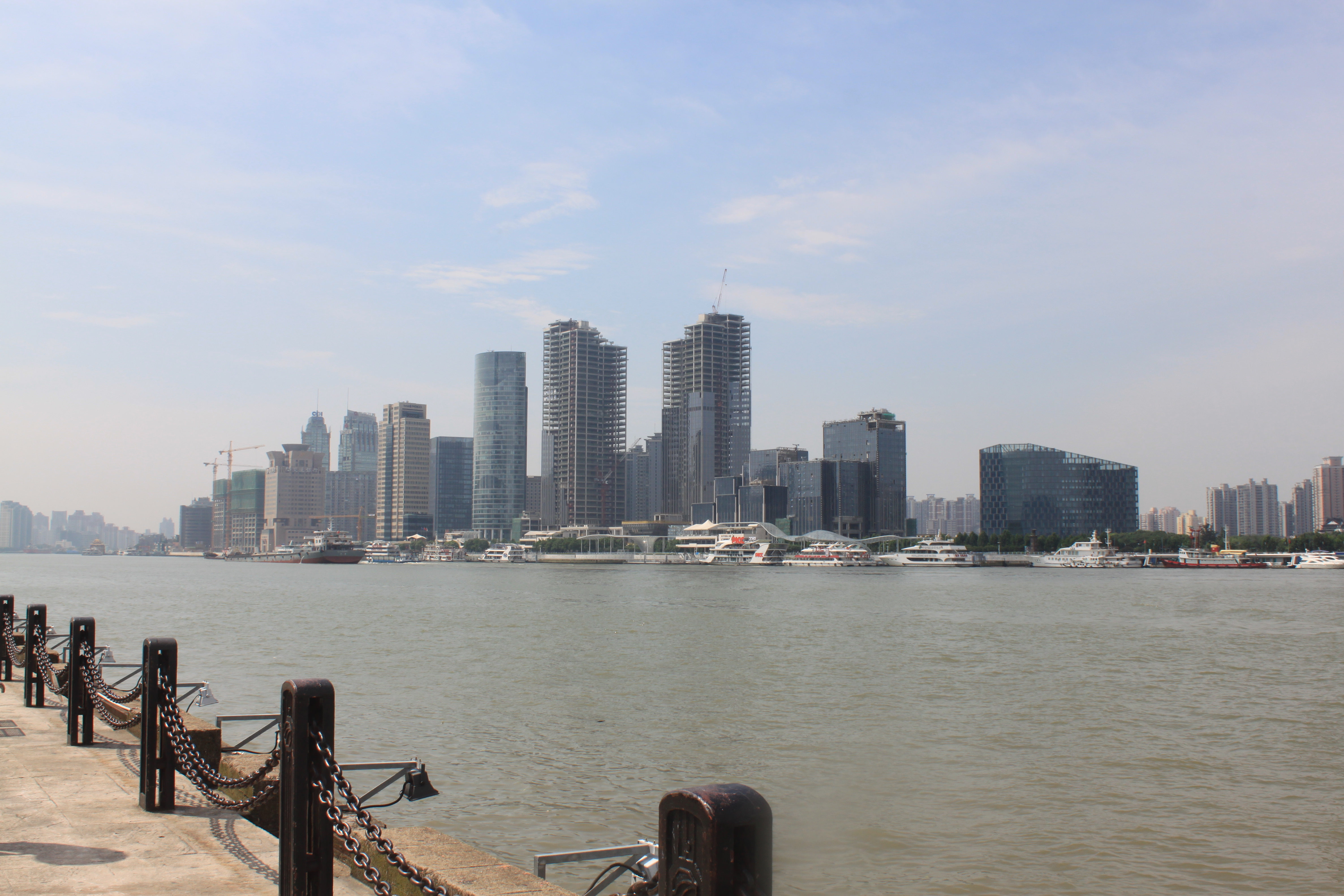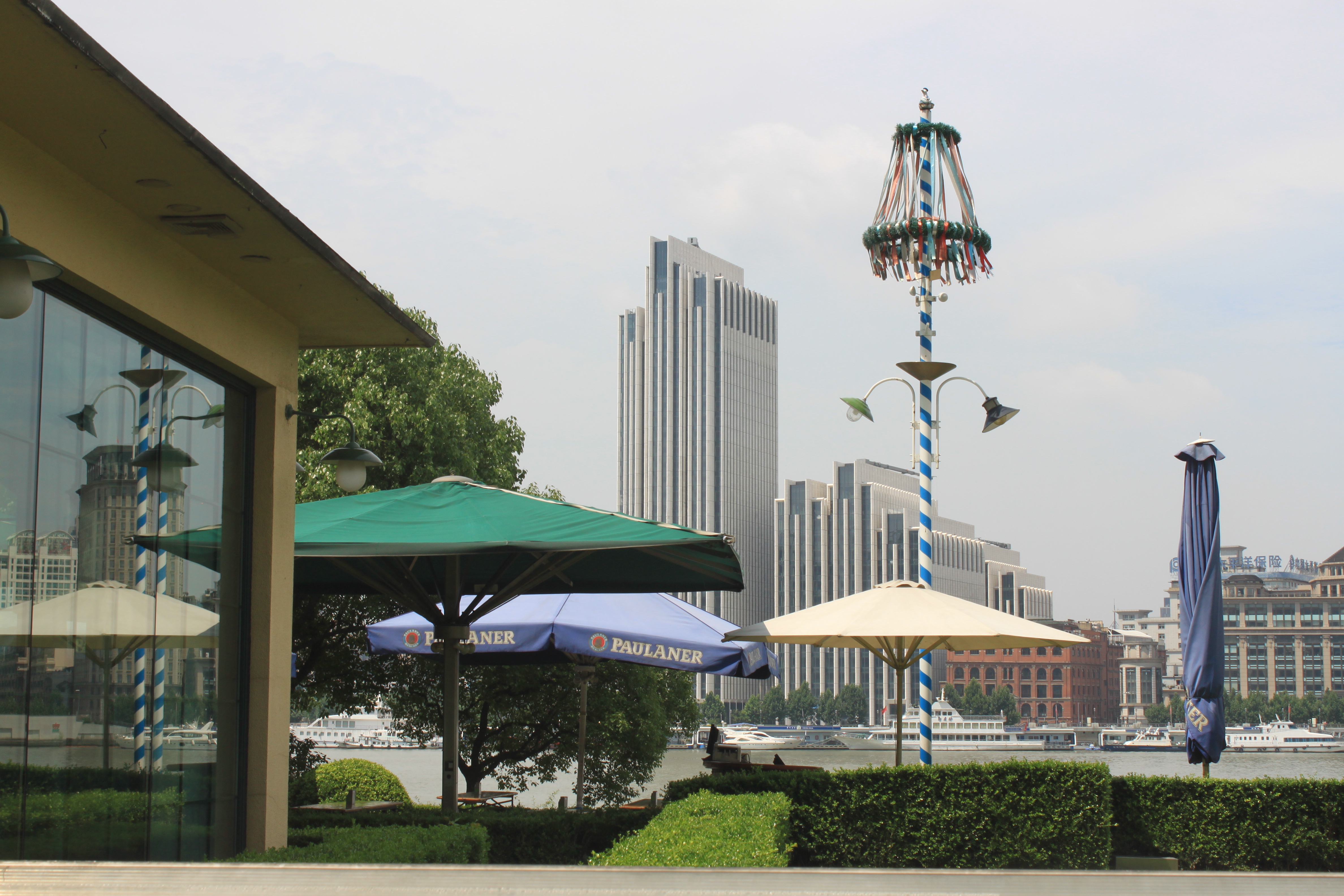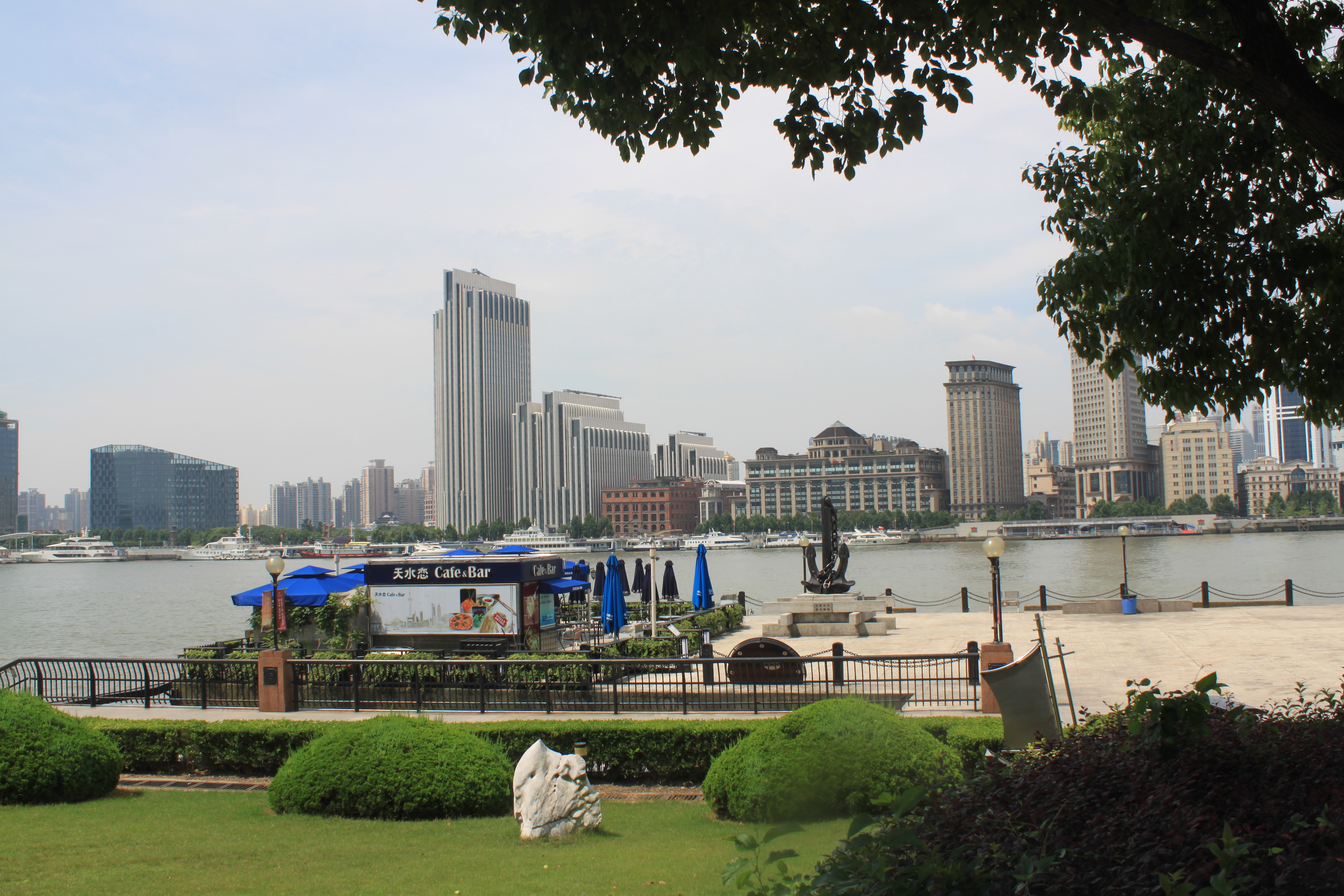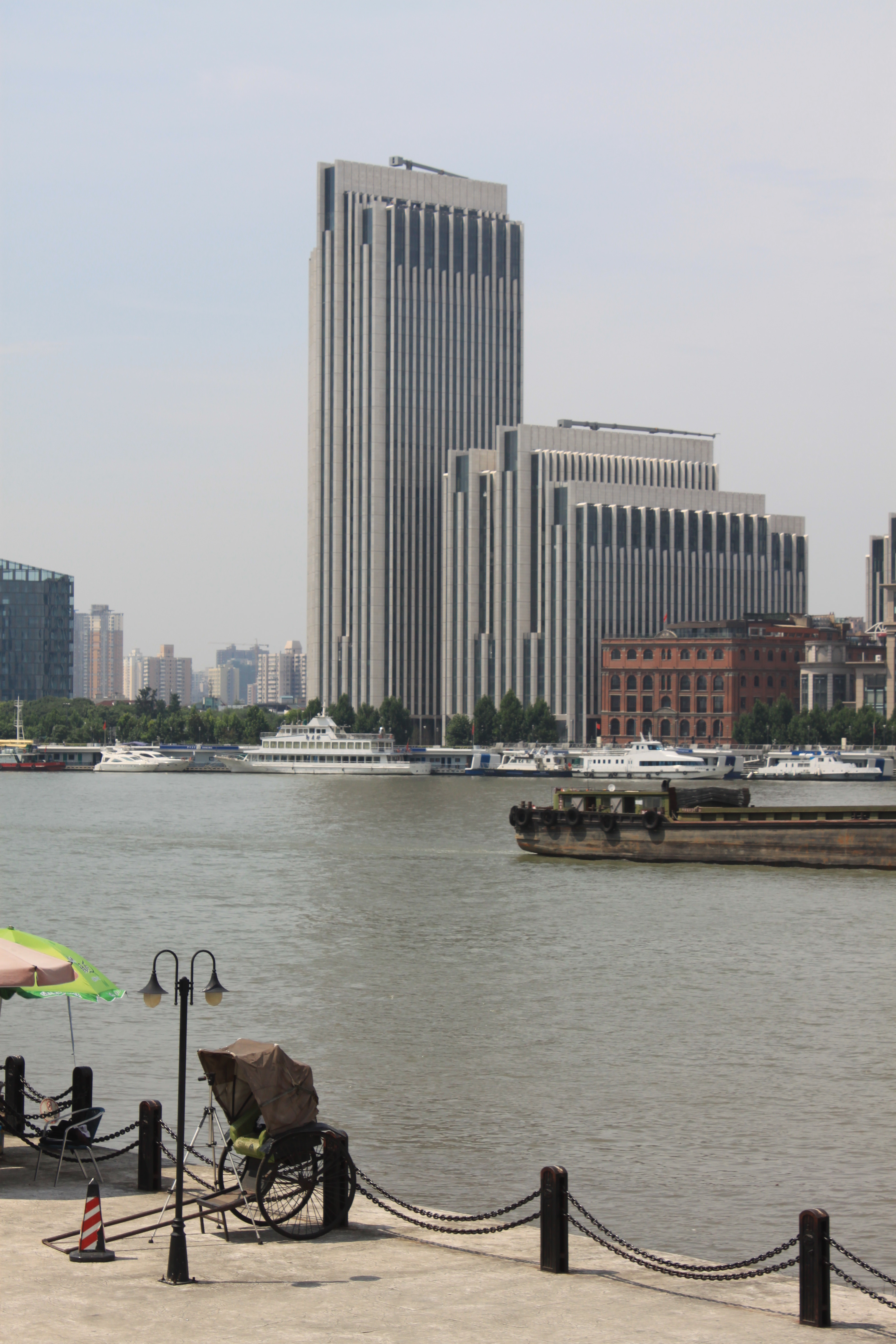 It was a blisteringly hot day and time had to be made for walking slowly wherever I had to walk, but I had also made time to arrive a little early so that I could walk along the Riverside Promenade on the west side of the Pudong Peninsula. Armed with an umbrella to keep off the sun, it was not particularly easy to take photographs, but an umbrella is much cooler than a hat which just gets hot and steamy after a while.