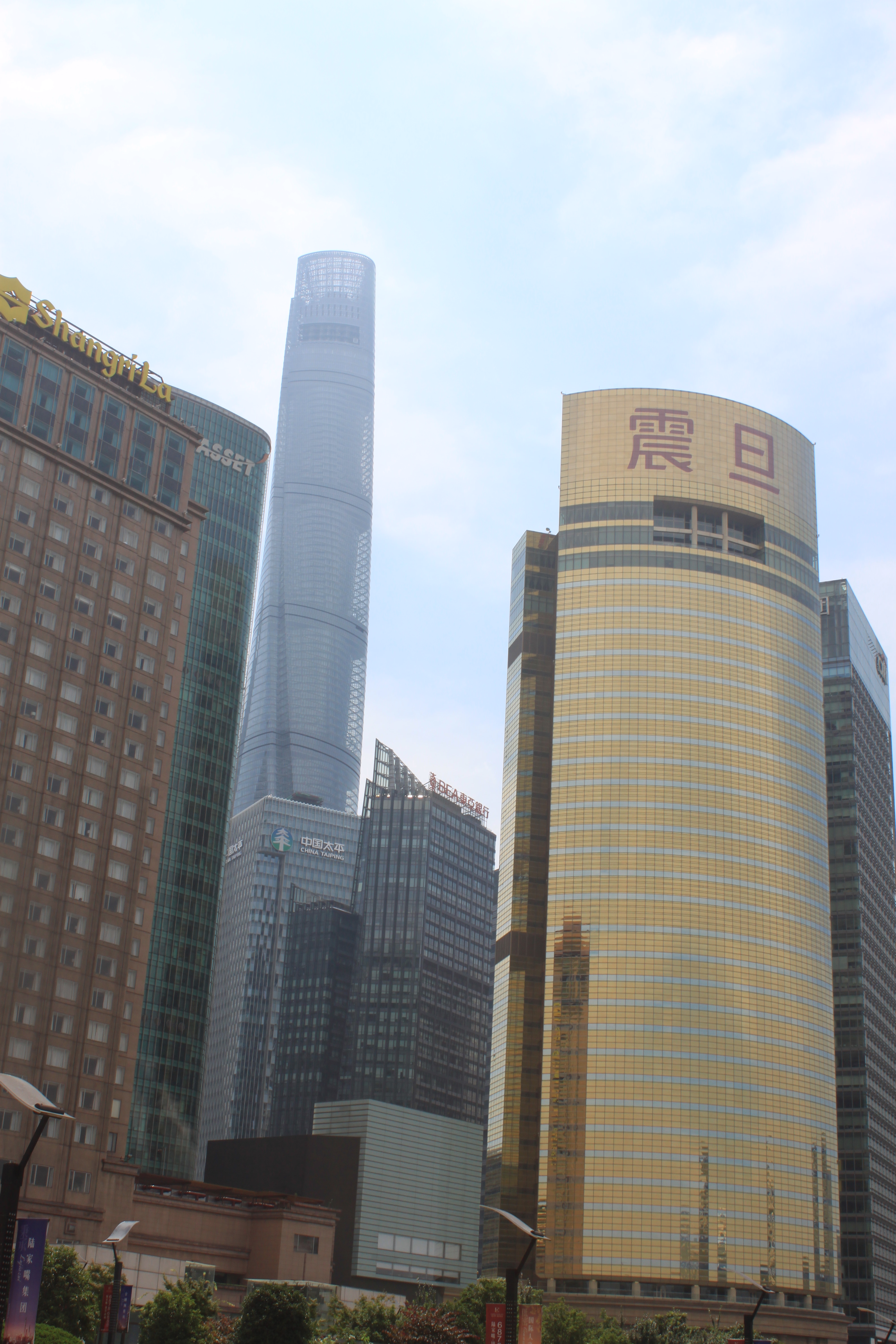 From 40 floors up in Janet’s lovely modern flat I could get a good view of the base of her compound and the base of the Shanghai Tower over the road.