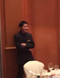 For my meal I had chosen marinated Norwegian Salmon, Traditional Turkey and a Platter of Christmas Pudding with Brandy Sauce, Mince Pies & Chocolate Brownies. Now I’m not sure that I have got this 100% right, so forgive me if I haven’t, as I didn’t know the couple in question, but I believe that the menu was arranged with the Executive Chef a long time ago. He and his wife were themselves Brits Abroad members, but he tragically died in a diving accident whilst on holiday over the summer. If that was indeed the case, it was lovely that the hotel could deliver the menu without him and a fitting memory to all who knew him and much sympathy for his wife who had to go back to the UK with his body and then return to Shanghai to pack up their lives here. It is hard to imagine what she has had to endure.
