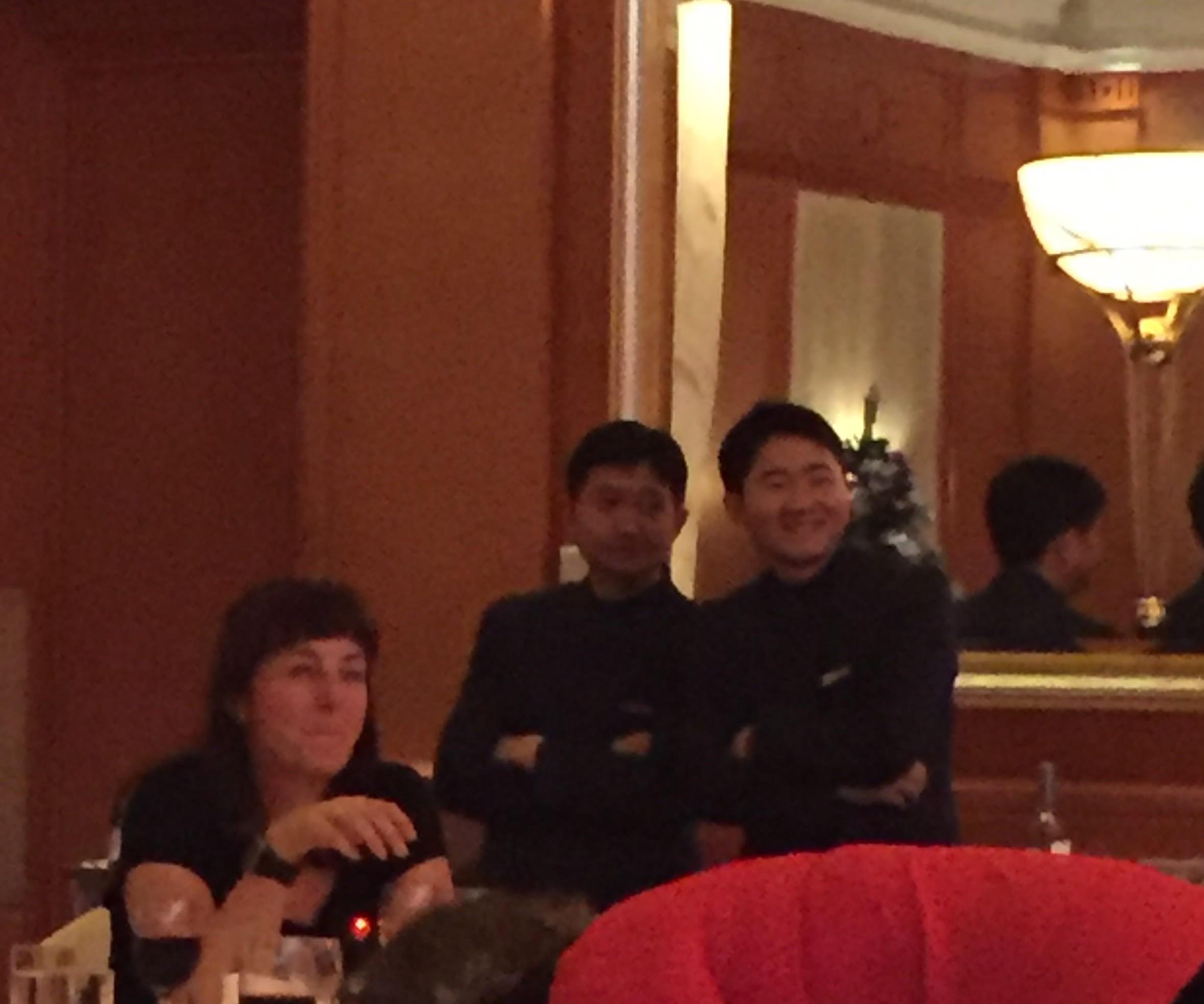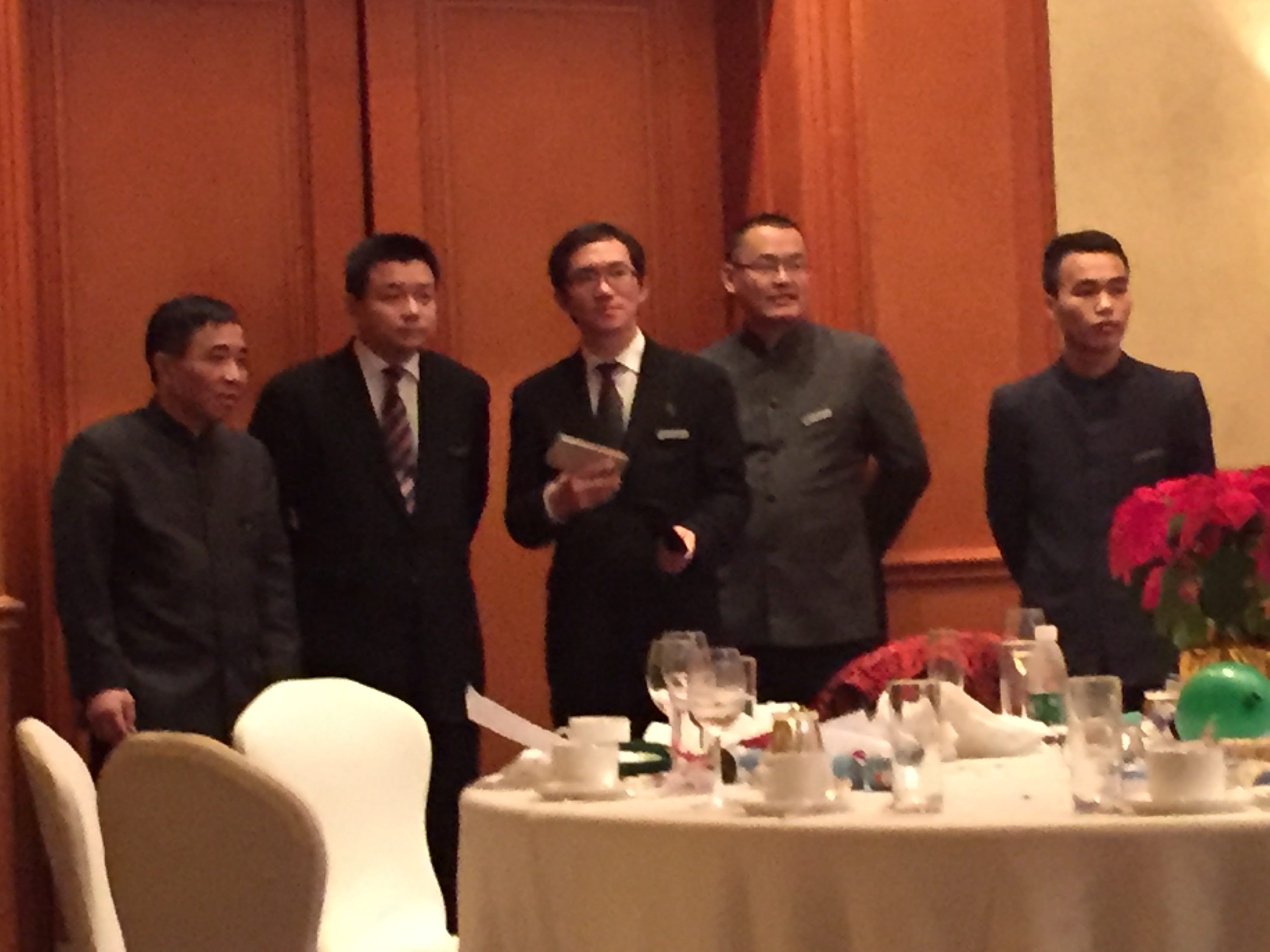 For my meal I had chosen marinated Norwegian Salmon, Traditional Turkey and a Platter of Christmas Pudding with Brandy Sauce, Mince Pies & Chocolate Brownies. Now I’m not sure that I have got this 100% right, so forgive me if I haven’t, as I didn’t know the couple in question, but I believe that the menu was arranged with the Executive Chef a long time ago. He and his wife were themselves Brits Abroad members, but he tragically died in a diving accident whilst on holiday over the summer. If that was indeed the case, it was lovely that the hotel could deliver the menu without him and a fitting memory to all who knew him and much sympathy for his wife who had to go back to the UK with his body and then return to Shanghai to pack up their lives here. It is hard to imagine what she has had to endure.