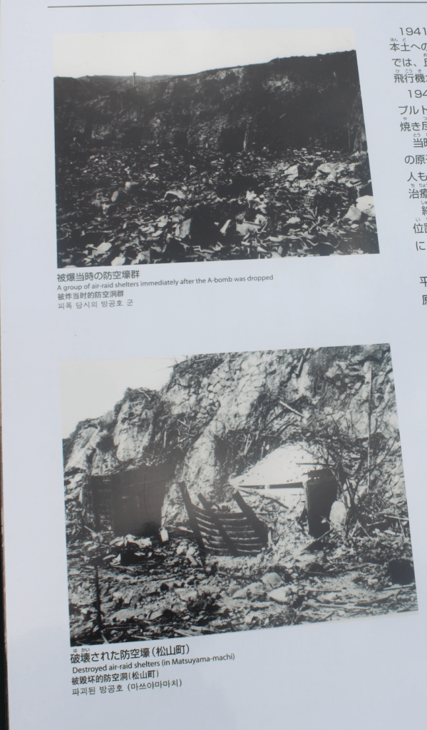 According to a survey conducted in 2009 by the Ministry of Land, Infrastructure, Transport and Tourism, there were 193 air-raid shelters in Nagasaki during the war. Located very close to ground zero (approximately 100m) shelters in Peace Park and Matsuyama-machi are valuable as remaining structures that convey the importance of peace, the power of the atomic bomb and the horrors of war, including how people lived before, during and after the A-bomb was dropped.