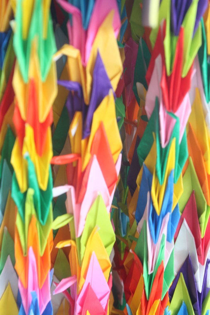The Crane Monument of Nagasaki, and in particular the origami Cranes, have become a well-known motif around the world for world peace, but particularly in Japan. These folded threaded cranes are strung up in many places around Nagasaki.