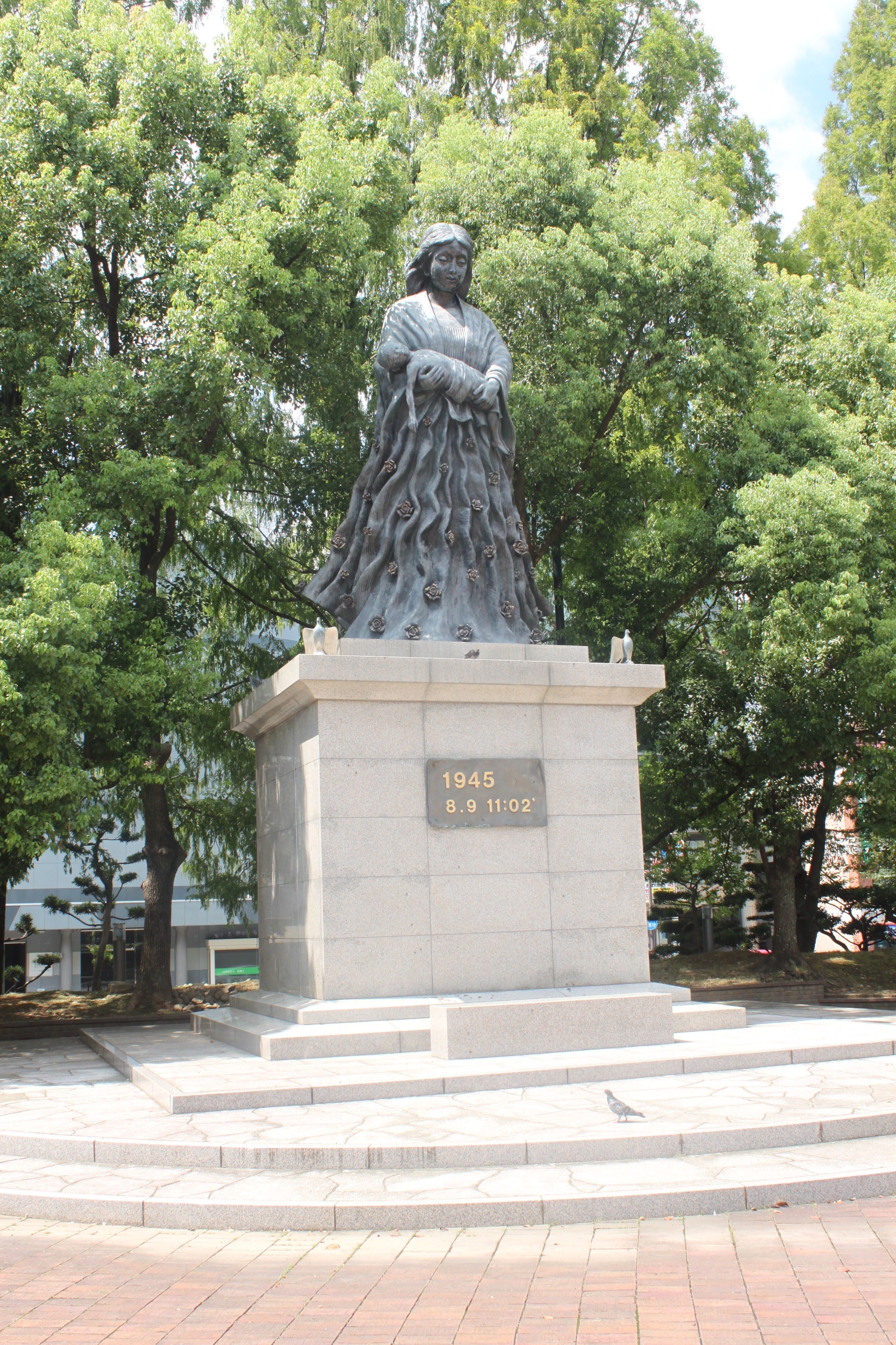 The remaining monument in the park is statue by Nagasaki-born sculptor Naoki Tominaga, which expresses this child and parental loss. 70% of the victims of the Nagasaki atomic bombing were children, women and the elderly.