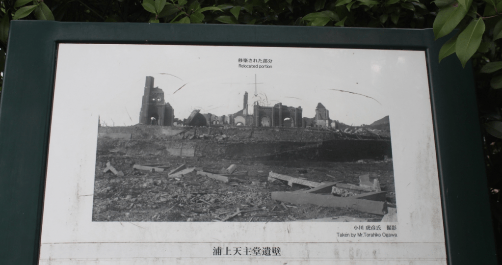 Standing next to the monolith is a part of the Urakami Cathedral – a broken church wall – still standing after the blast. It was however removed from its position and rebuilt here was part of the epicentre park, to make way for a newly constructed church in 1958.