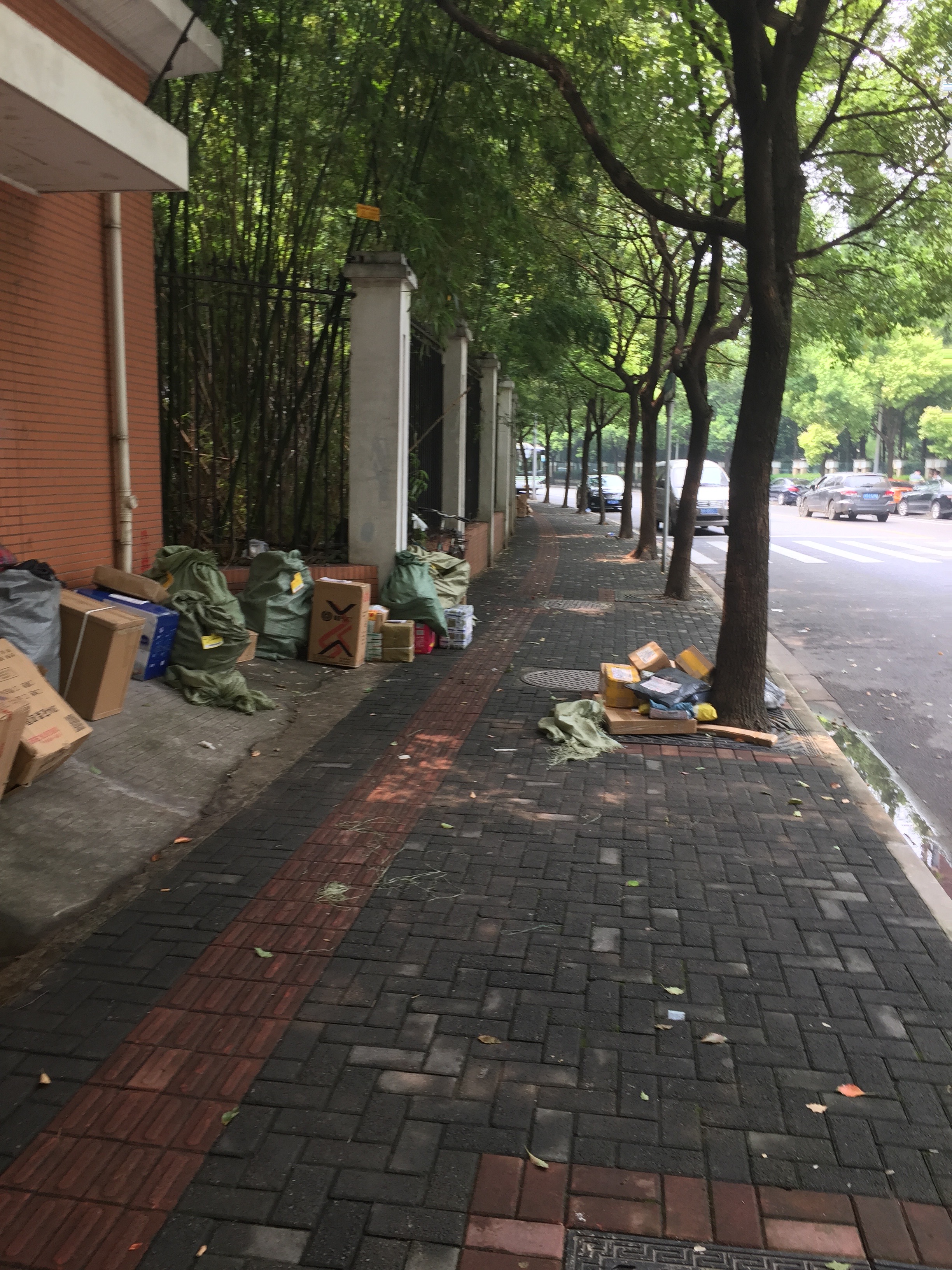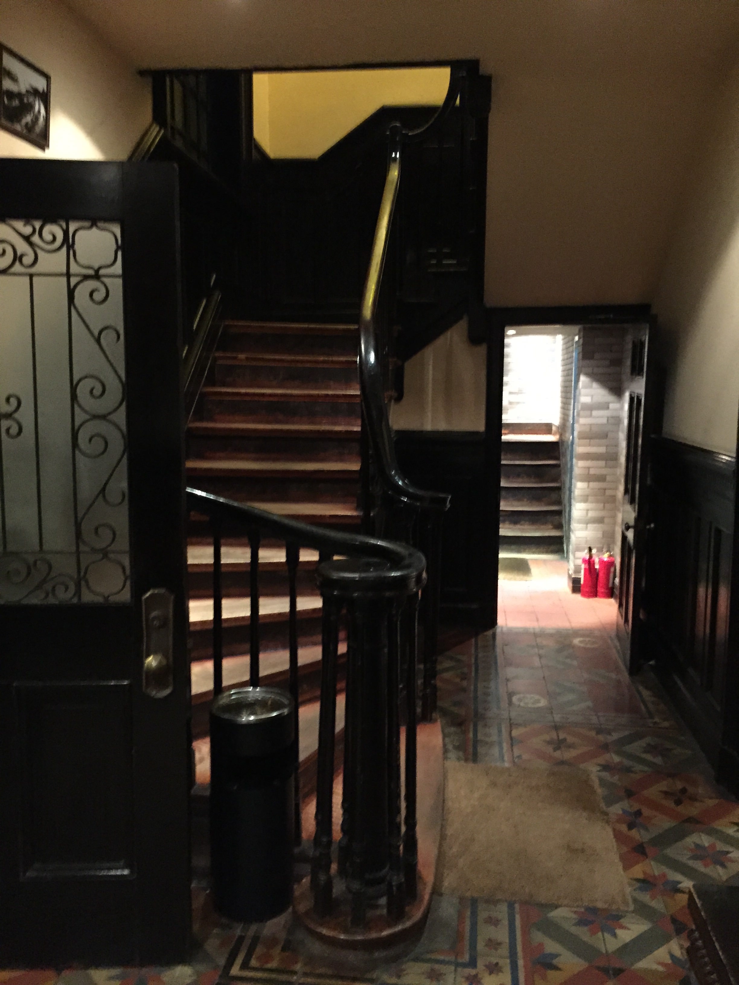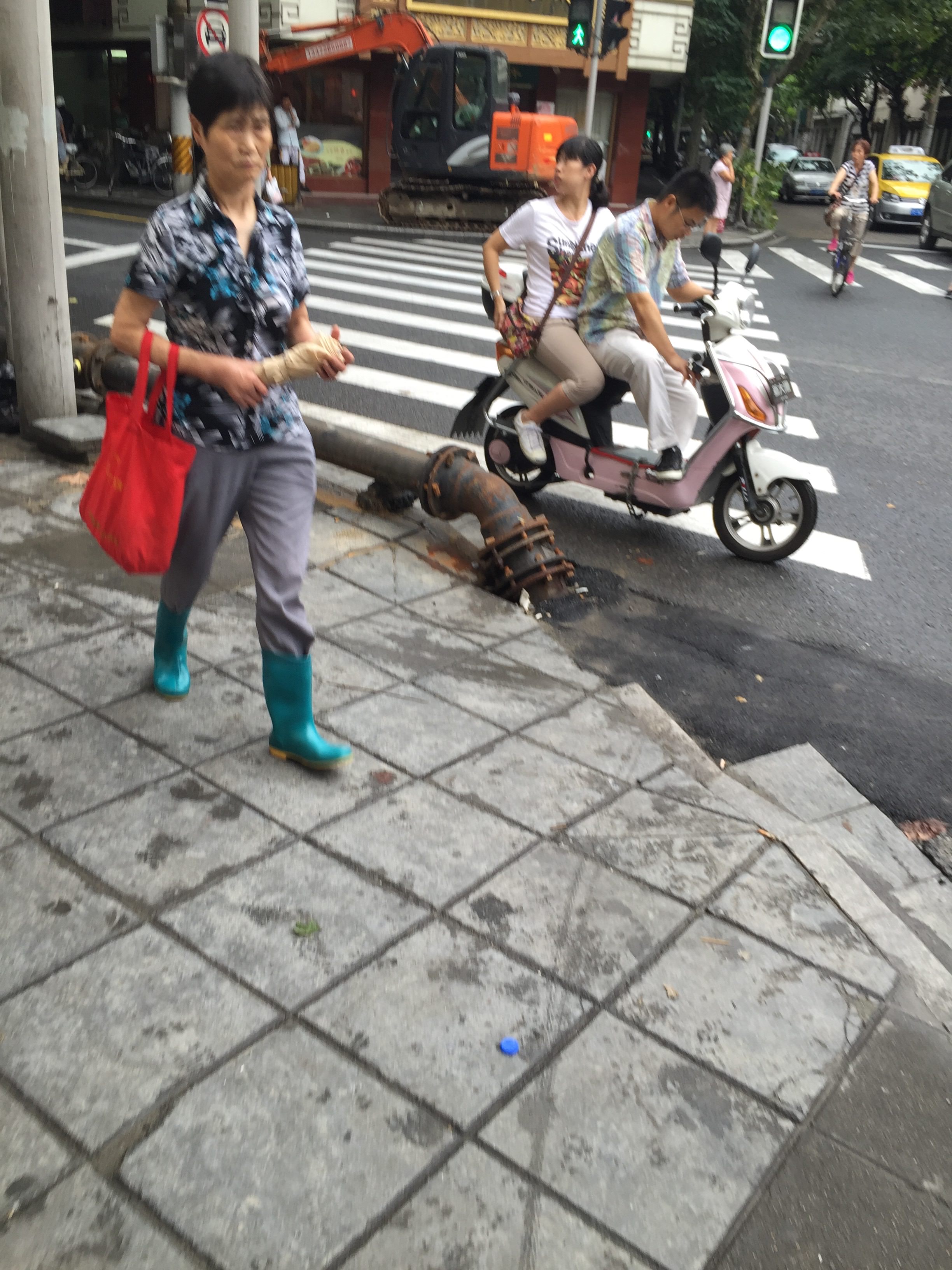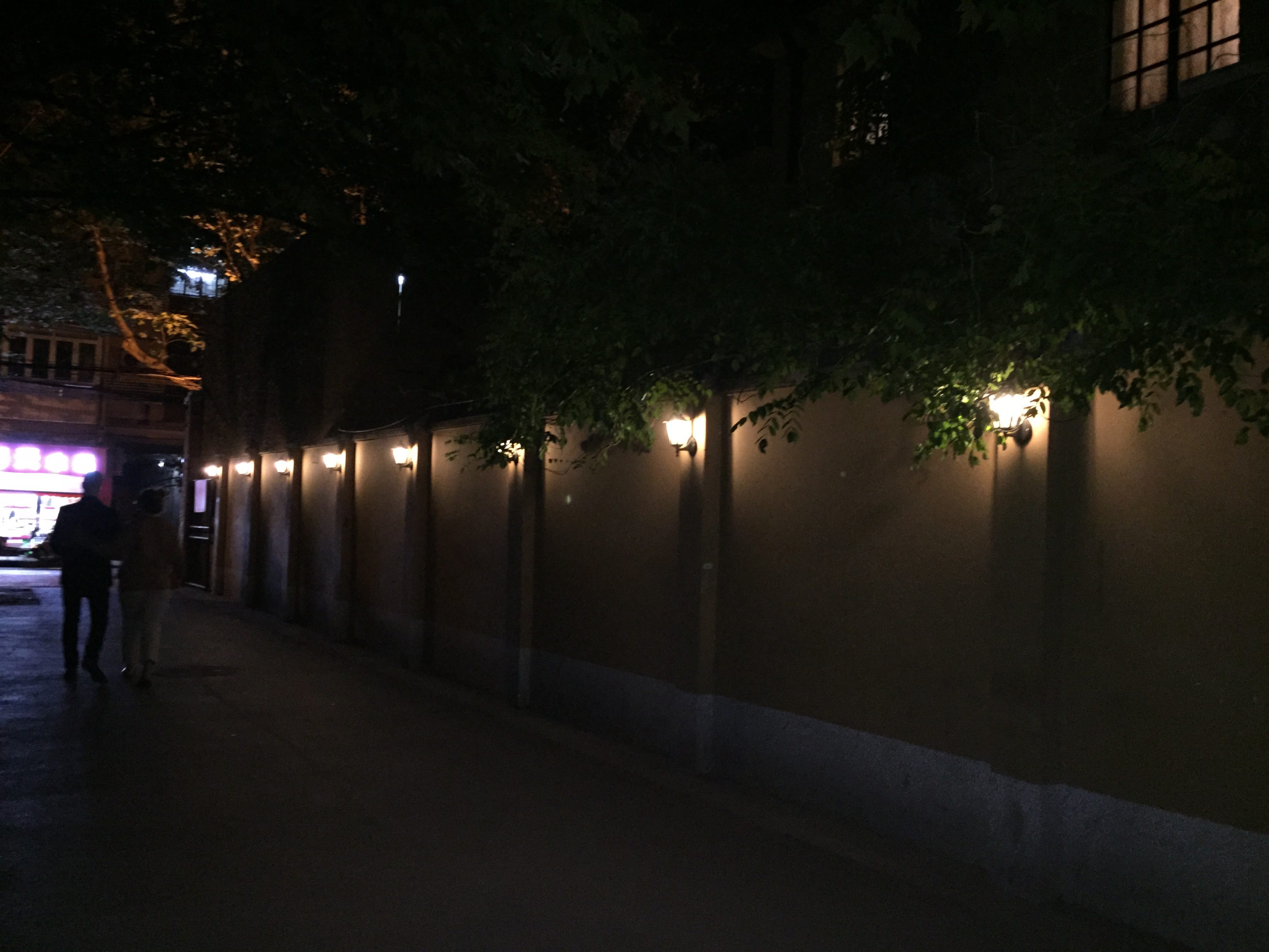 I liked the on-board panda and as we left the market the man having a haircut at the open- air barbers. And a little further up the street on the way back to the metro station, we passed this house. Each time we see it we can see its former glory. What a