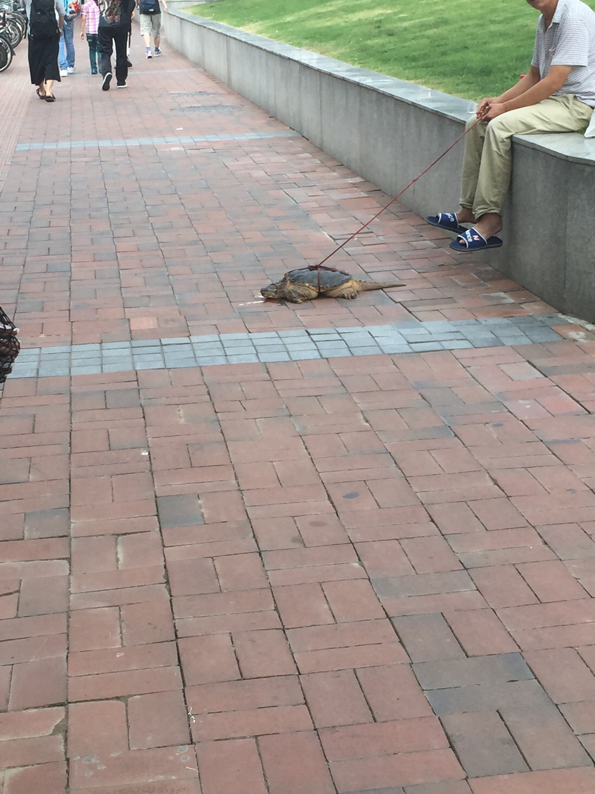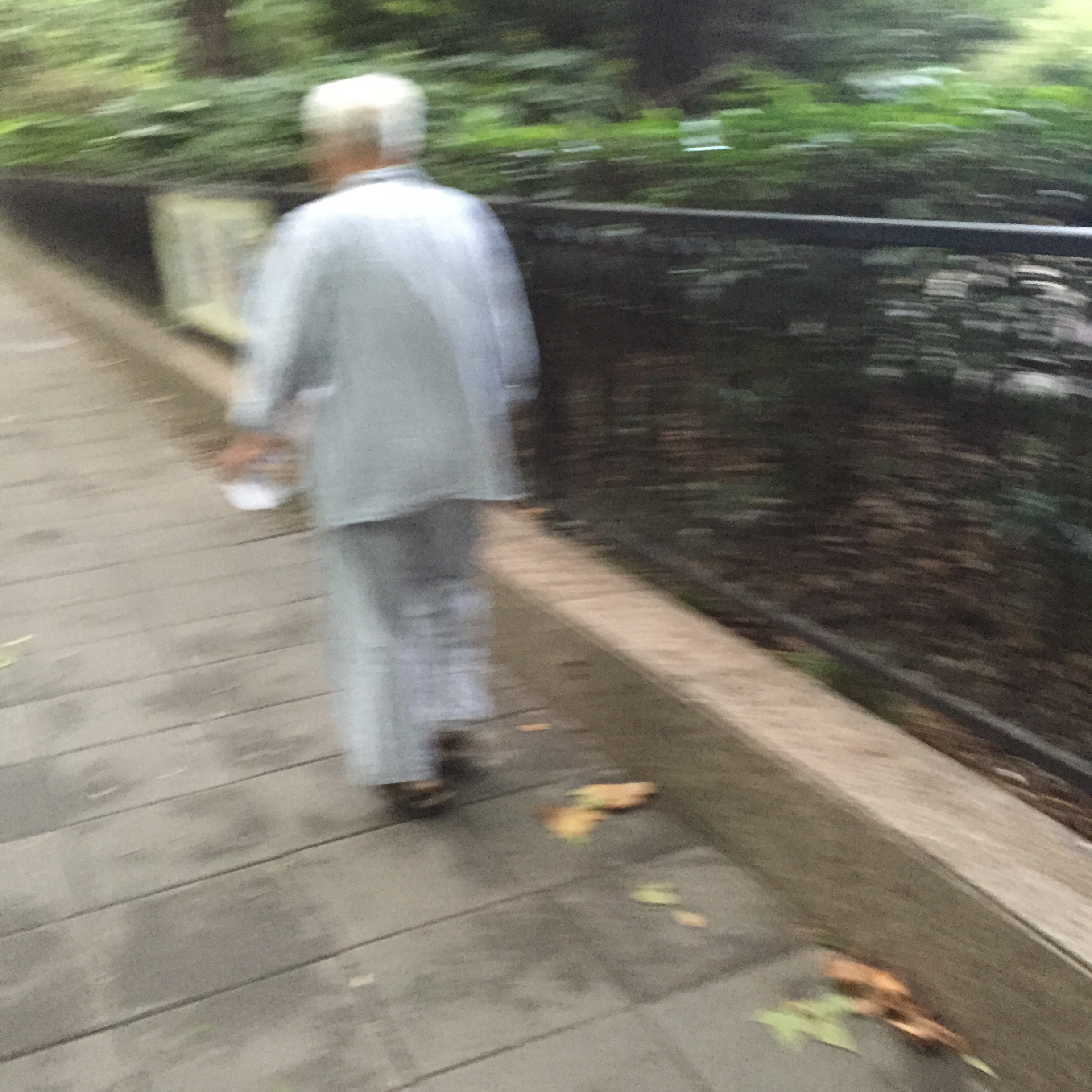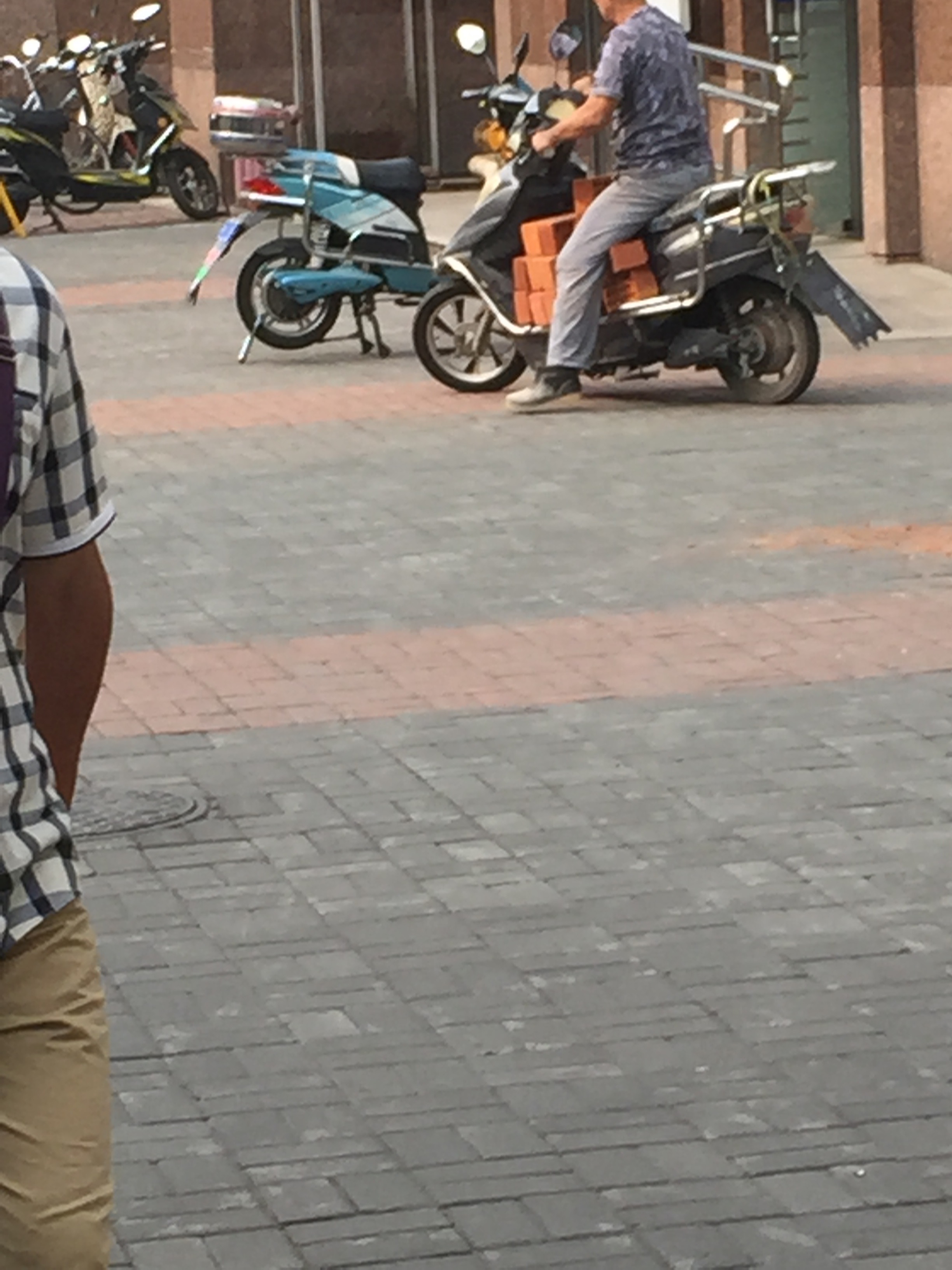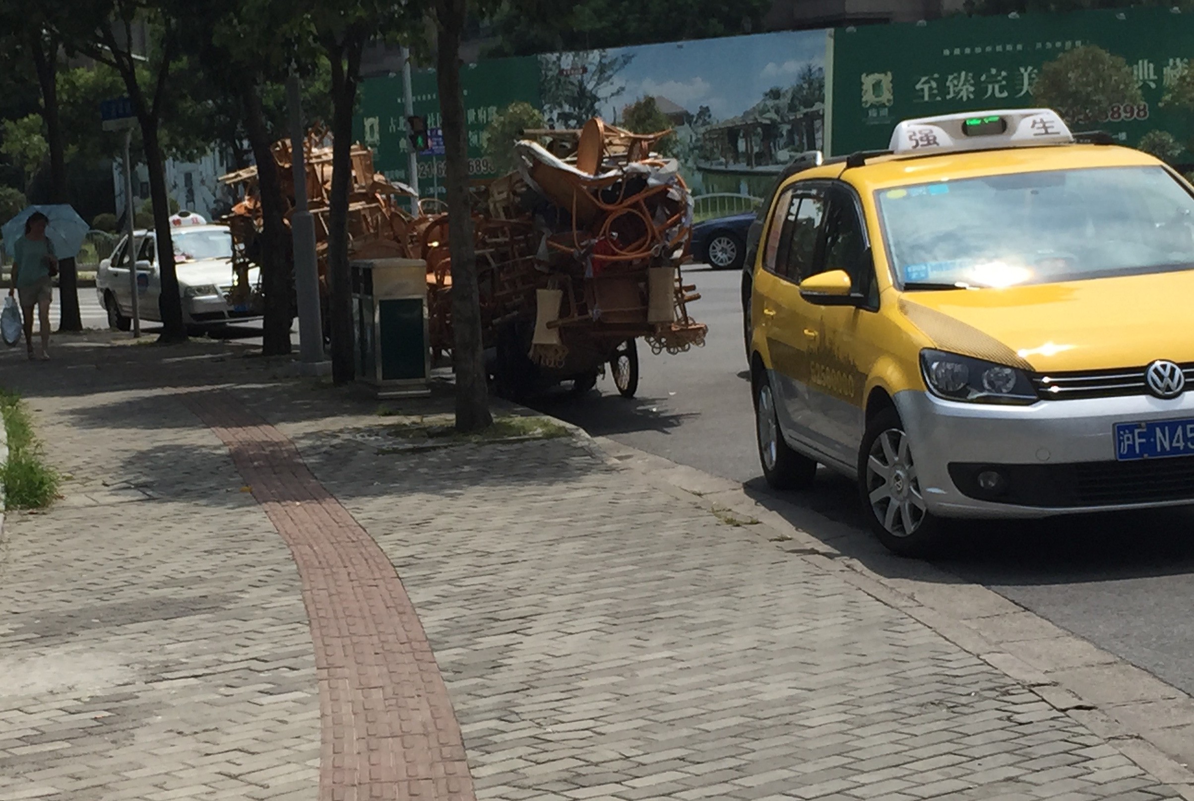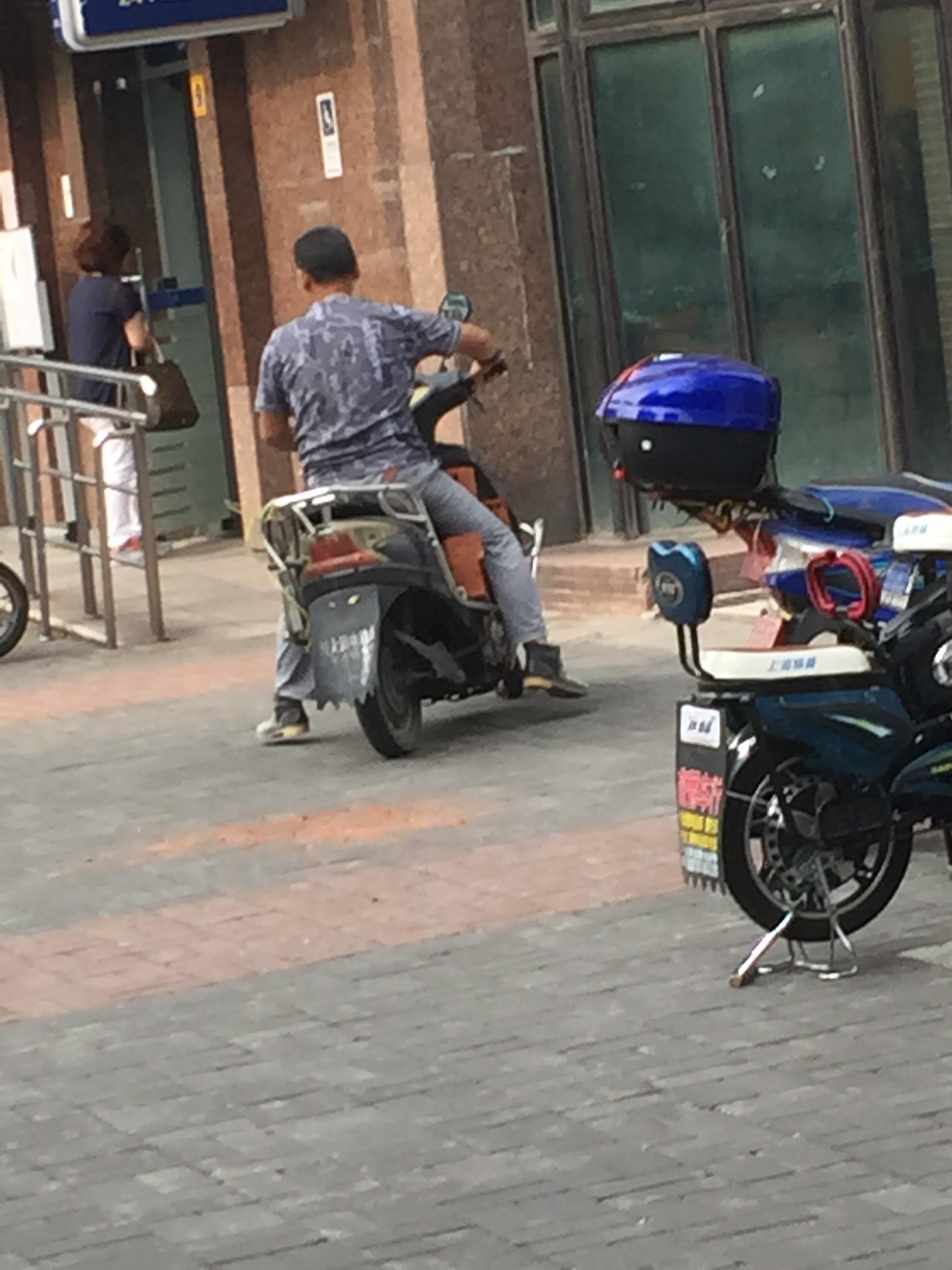 where there were locals with typical local shops. Down the alleyway on the way to the courtyard was an antique shop, selling amongst other things a chair designed to hold a baby in a standing position a sort of baby walker – the frame below the plate is pulled in and out to trap the baby at the back of the chair – we’ve seen one of these chairs in use in Fujian Province – and a calligrapher selling decorated fans.